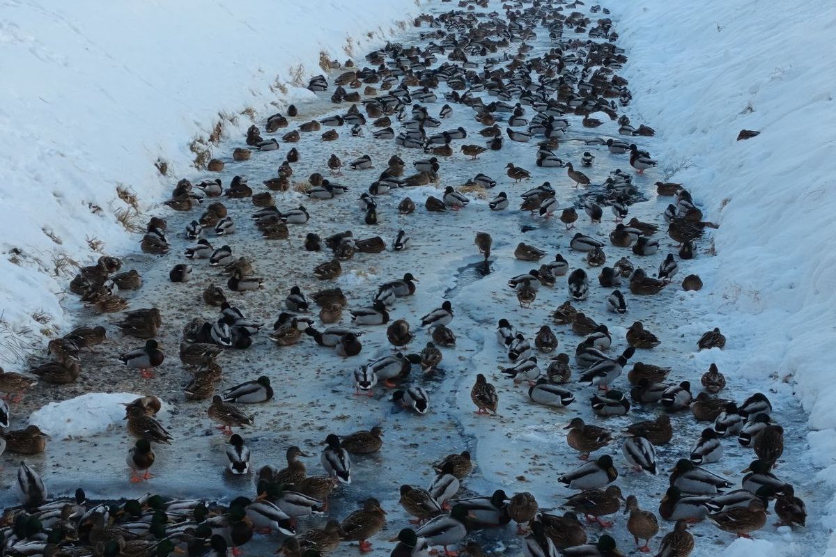 На участке реки Самаранка, расположенном на улице Космонавтов в городе Иваново, ледяные оковы, образовавшиеся на поверхности воды, превратились в смертельную ловушку для уток, которые искали себе пропитание.