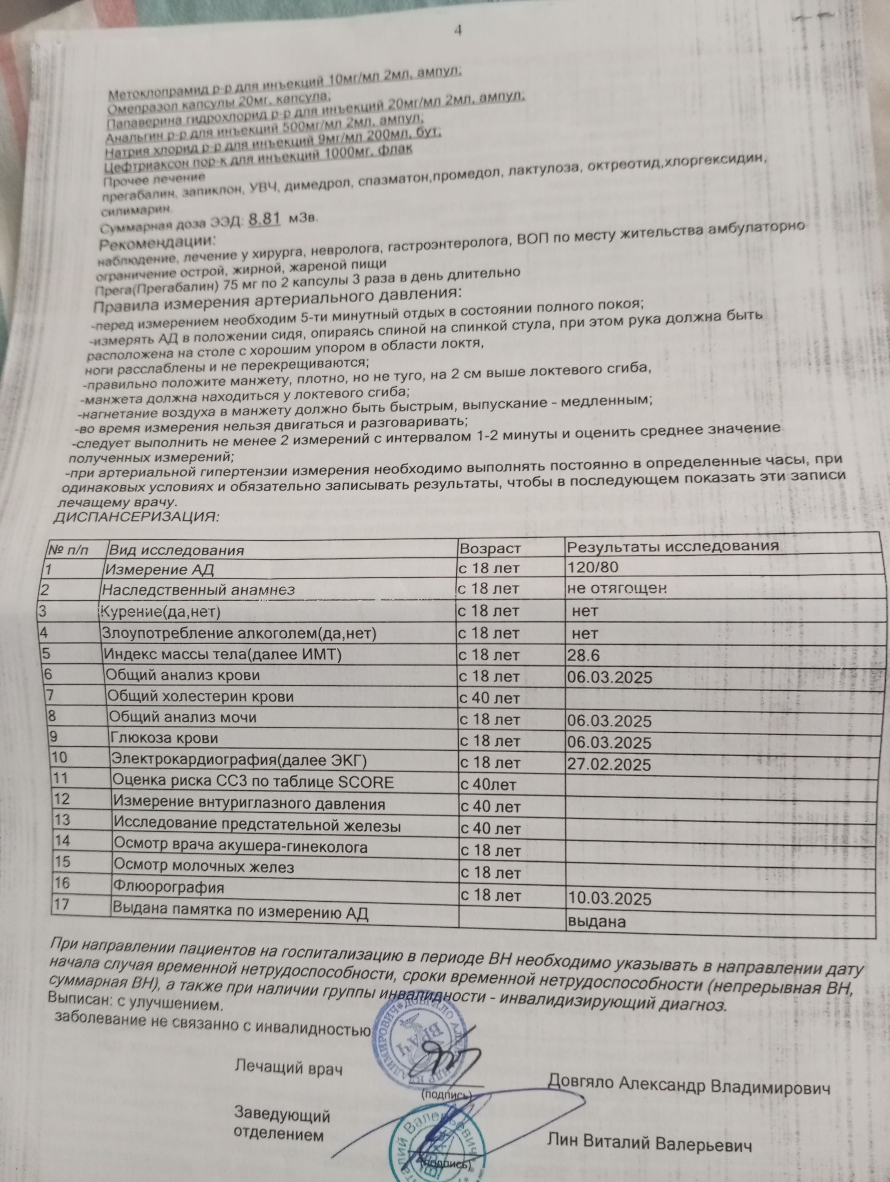 Перелом шейных позвонков спровоцировал нарушение обмена веществ, в результате чего началось усиленное выделение белка и выброс его в коленный сустав. Процесс привёл к разрушению правого коленного сустава: состояние ноги ухудшалось, начался сильный воспалительный процесс. Несмотря на неоднократные операции и попытки спасти правую ногу, в 2015 году её ампутировали. Но беда не заставила себя долго ждать: врачи едва меня спасли, проведя летом 2018 года третью операцию, из-за разрыва прямой кишки случился перитонит. В Марте 2025 года мне сделали операцию по удалению желчного пузыря. Операцию проводили не лапароскопически, а через полостной надрез, так как операция на животе уже была.