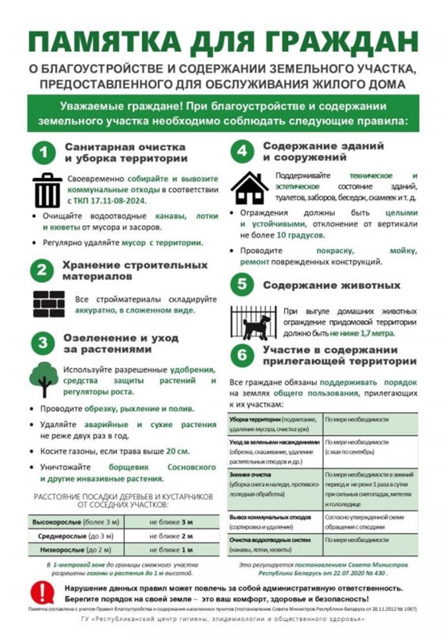 В соответствии с указанными требованиями юридическим лицам, индивидуальным предпринимателям и гражданам, являющихся собственниками земельных участков, необходимо обеспечить поддержание надлежащего санитарного состояния на прилегающих к земельным участкам территориях, в том числе очистку и уборку территорий от мусора, обрезку, скашивание и удаление отходов при выполнении работ по уходу за объектами озеленения, сбор, разделение по видам и удаление коммунальных отходов, очистку и уборку водоотводных систем открытого типа, предназначенных для отвода поверхностных и грунтовых вод.