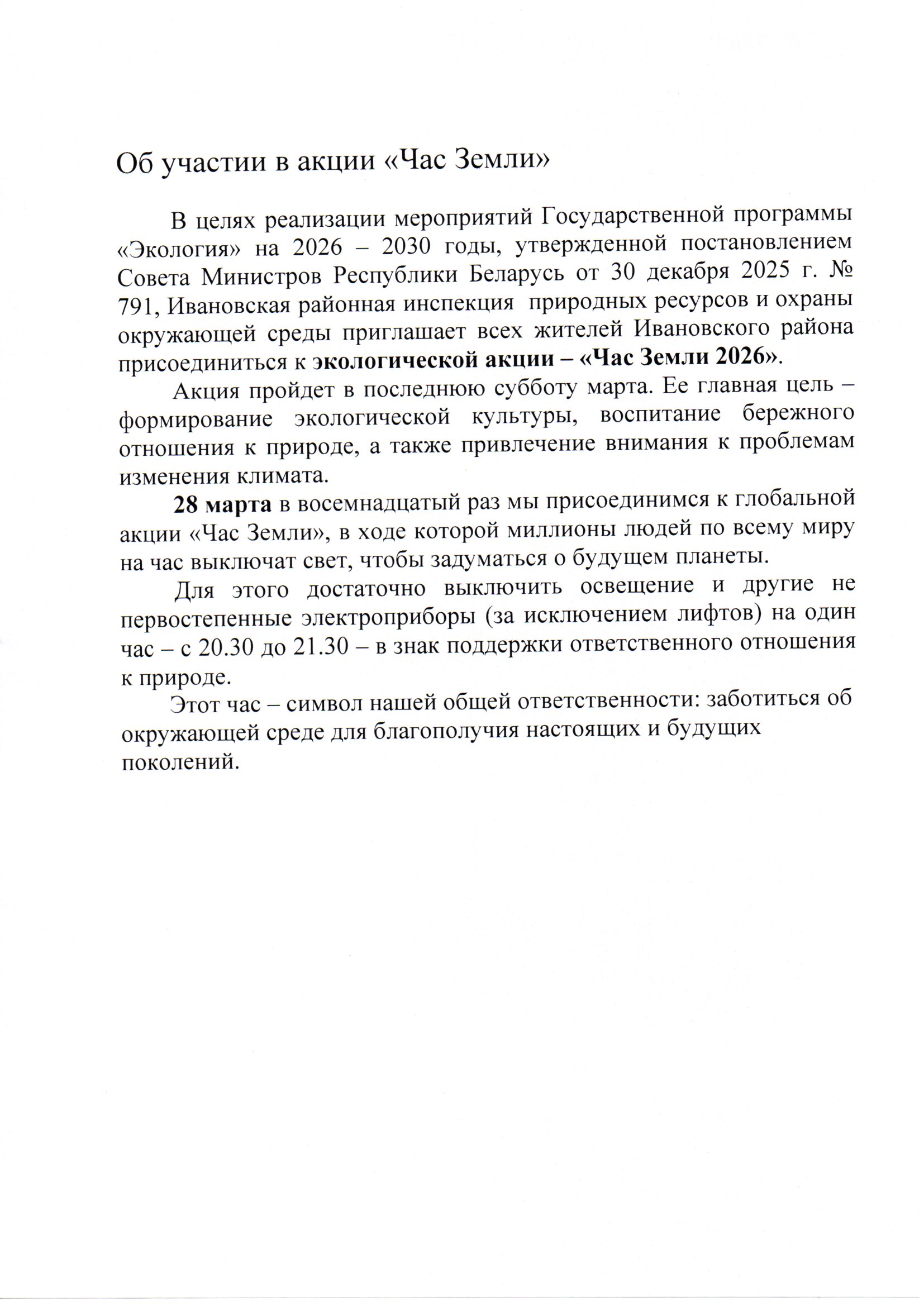 Об участии в акции "Час Земли"