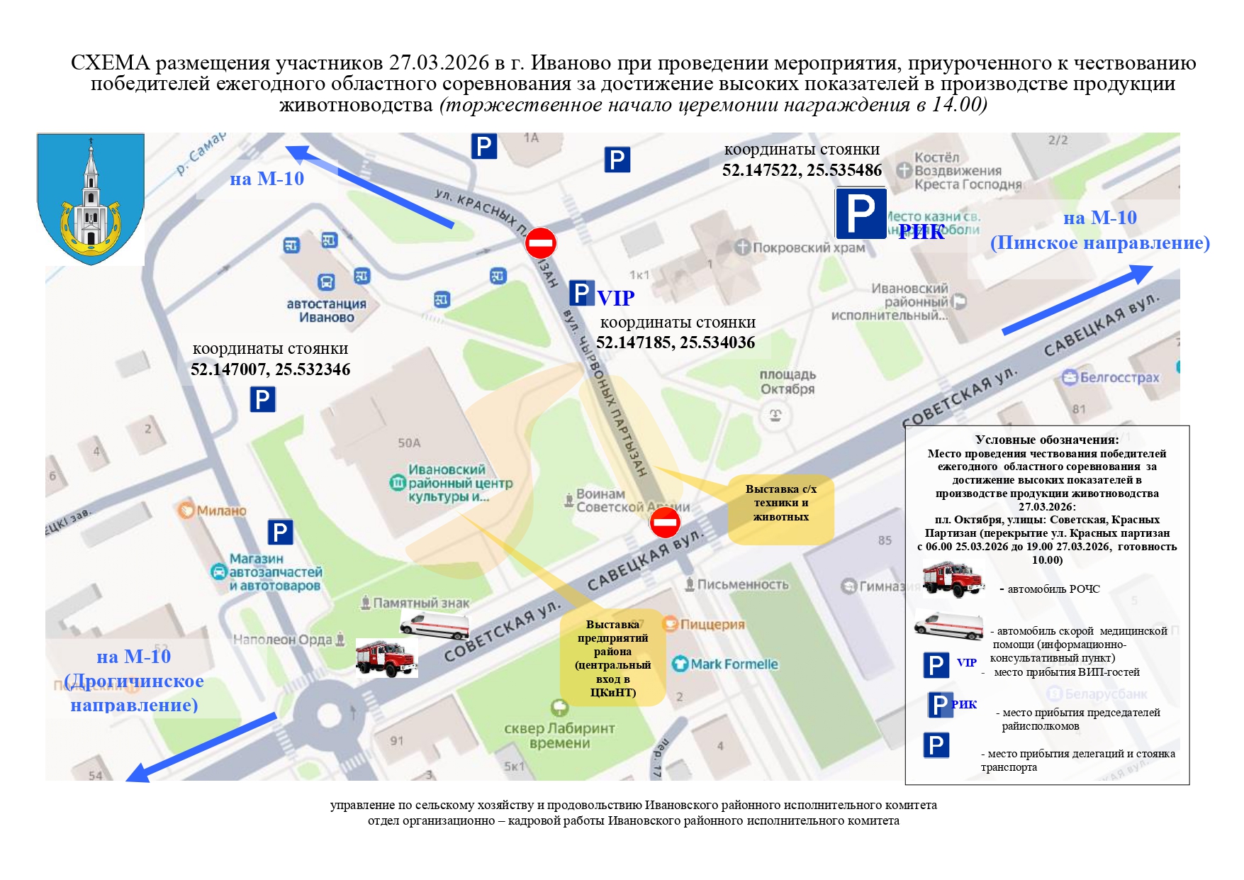 СХЕМА размещения участников 27.03.2026 в г. Иваново при проведении мероприятия, приуроченного к чествованию победителей ежегодного областного соревнования за достижение высоких показателей в производстве продукции животноводства