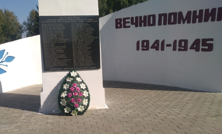 высечены имена 64 жителей деревни, расстрелянных 31 января 1943 года. Возле