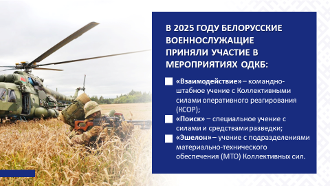 Неотъемлемым элементом безопасности Евразийского региона остается Организация Договора о коллективной безопасности (далее – ОДКБ), одним из ключевых членов которой является наша страна.