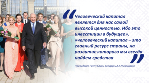 Глава государства А.Г.Лукашенко неоднократно подчеркивал, что «человеческий капитал является для нас самой высокой ценностью. Ибо это инвестиции в будущее», «человеческий капитал – это главный ресурс страны, на развитие которого мы всегда найдем средства».