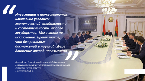 «Инвестиции в науку являются ключевым условием экономической стабильности и состоятельности любого государства. Мы в этом не исключение. Время такое, что без реальных достижений в научной сфере движение вперед невозможно», – сказал Президент на совещании по анализу деятельности Национальной академии наук Беларуси.