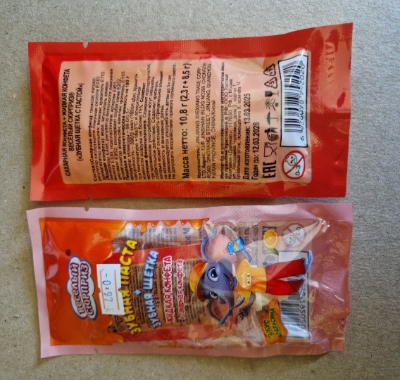 сахарная конфета+жидкая конфета «Зубная щётка с пастой» торгового