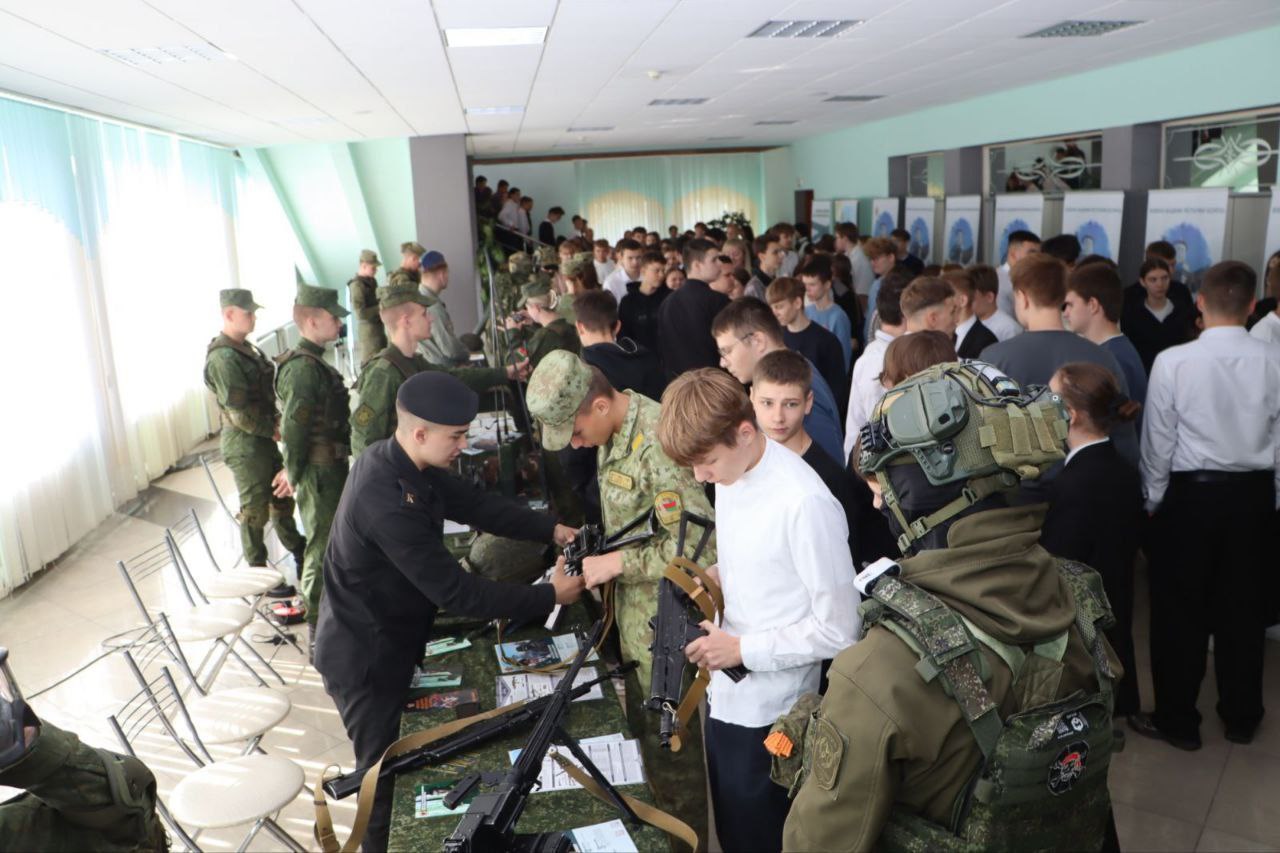 Перед ребятами выступил военный комиссар Ивановского района подполковник Сергей Кохнюк. Старшеклассники с большим с интересом слушали слова выступающих офицеров, и пообщались с курсантами.